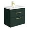 Arezzo 600 Matt Dark Green Wall Hung 2-Drawers Vanity Unit with Brushed Brass Handles