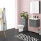 Arezzo Grey Wall Hung Sink Vanity Unit + Toilet Package with Matt Black Handle