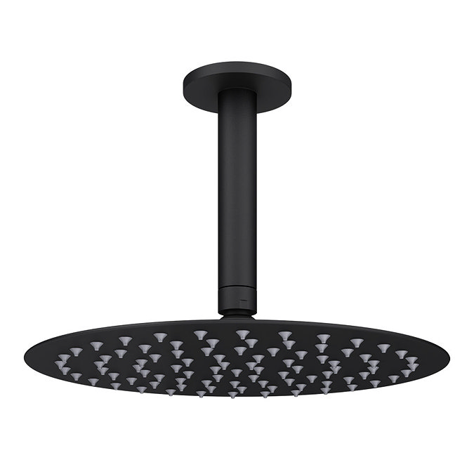 Arezzo Matt Black 200mm Thin Round Shower Head + Ceiling Mounted Arm