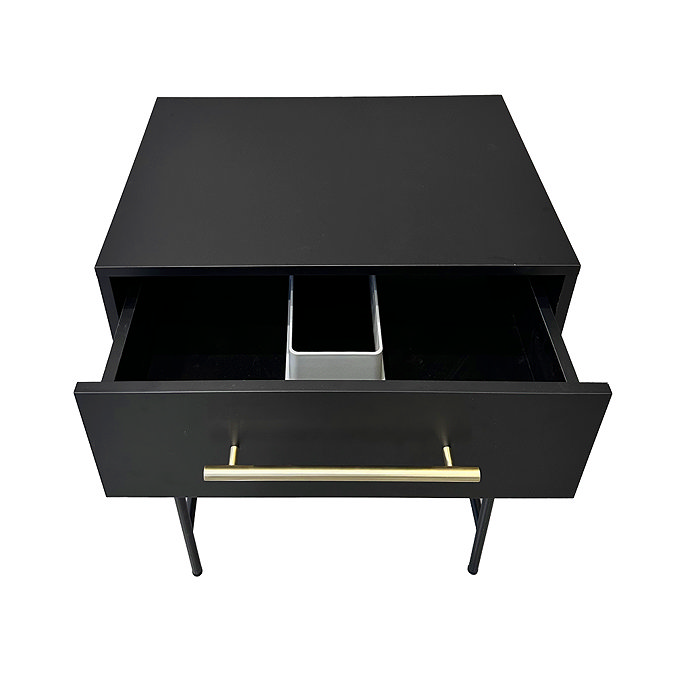 Gatsby Matt Black 600mm Drawer Countertop Vanity Unit with Metal Frame and Brushed Brass Handle