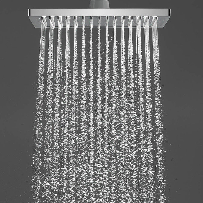 The hansgrohe Ecostat E Square Complete Shower Set with Shower Slider Rail Kit promises you showering indulgence on a grand scale. The Ecostat E Thermostat 2 Function Concealed Finish Set operates the fixed head and shower handset and features a thermostat cartridge with an adjustable temperature limit. The Crometta E 240 shower heads Rain spray is perfect for rinsing shampoo out of your hair while the QuickClean rub clean nubs loosens any limescale deposits making sure your hand shower looks beautiful, and stays working for longer. The Croma Select E Vario 3 Spray Shower Slider Rail Kit allows you to fix the shower head to the perfect height – whatever your size, or showering position. It features three spray functions for an energising, invigorating showering experience.