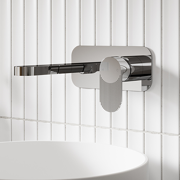 Nuie Cyprus Fluted 2-Hole Wall Mounted Basin Mixer with Plate - Chrome