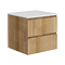 Osaka Slatted Oak 600mm 2-Drawer Countertop Vanity Unit with White Stone Worktop