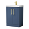 Roxbury Deco Fluted 600mm Blue Vanity Unit - Floor Standing 2 Door Unit with Brushed Brass Handles