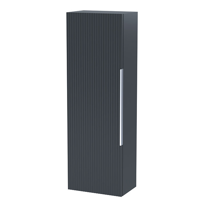 Venice Fluted Wall Hung Tall Storage Cabinet - Satin Anthracite with Chrome Handle