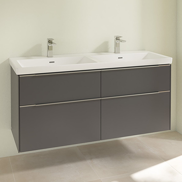 Villeroy and Boch Subway 3.0 Graphite 1300mm Wall Hung 4-Drawer Double Basin Vanity Unit with Glossy Aluminium Handle