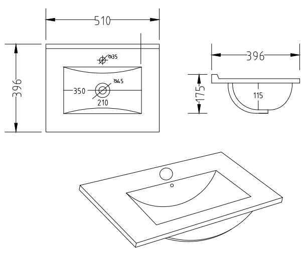 Arezzo 500 Matt Black Wall Hung 1-Drawer Vanity Unit with White Slimline Basin + Matt Black Handle