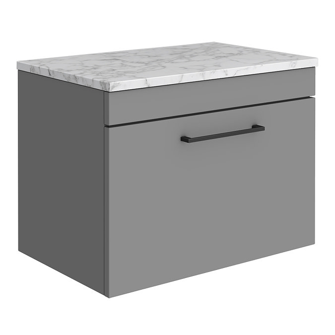 Arezzo Wall Hung Countertop Vanity Unit - Matt Grey - 600mm w. Matt White Marble Worktop & Black Handle
