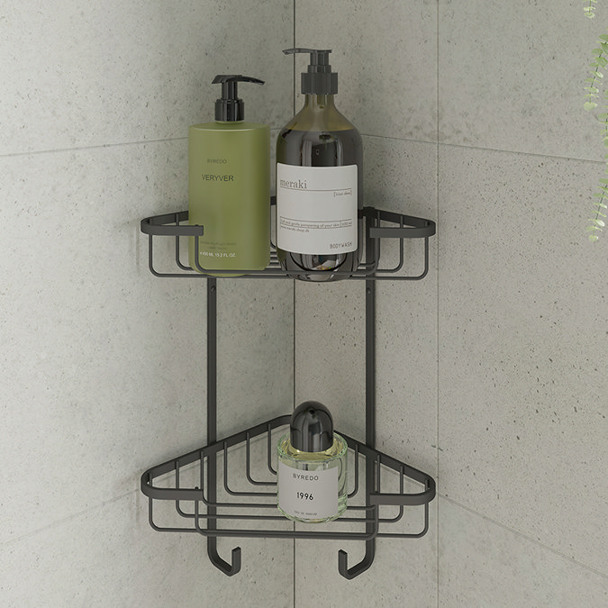 Croydex Matt Black Two Tier Corner Shower Basket