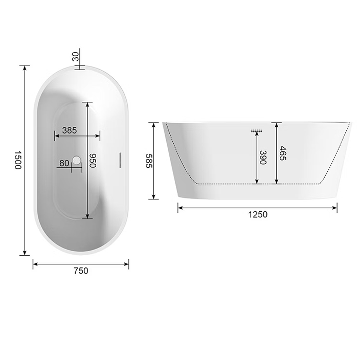 Mode Tate 1500mm Black Double Ended Freestanding Bath with Waste