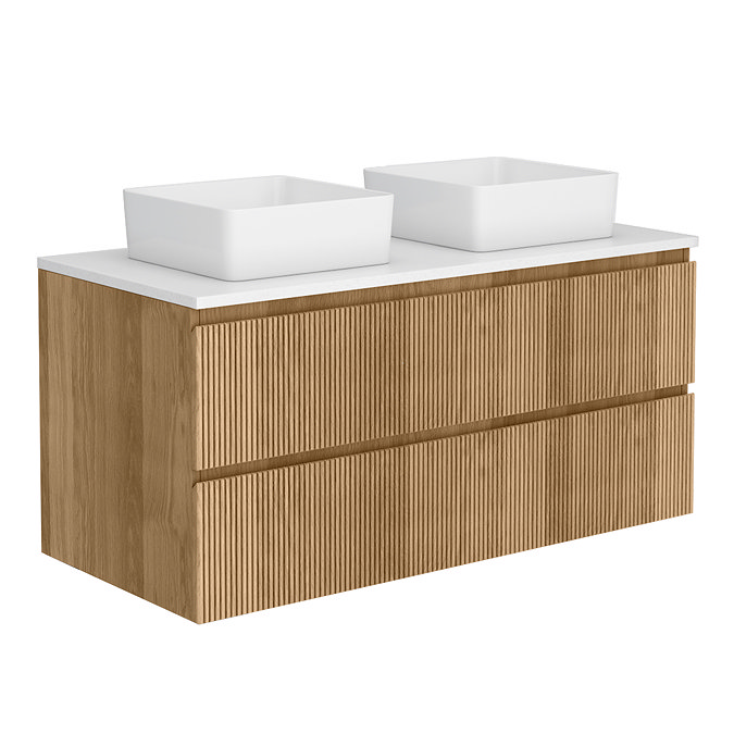 Osaka Slatted Oak 1200mm 2-Drawer Vanity Unit with White Stone Worktop & Rectangular Basin