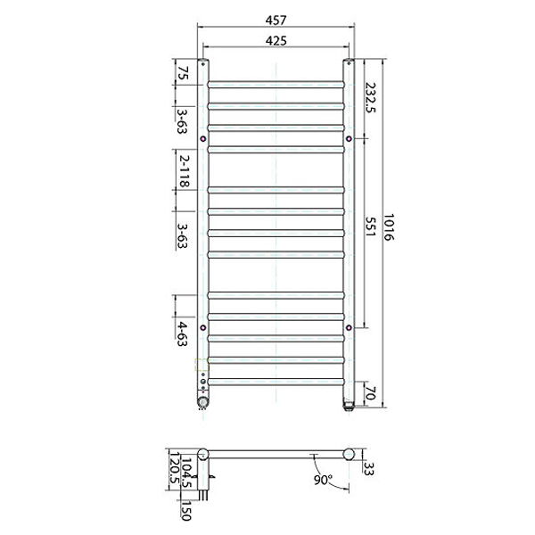 The Heating Co. 457 x 1016mm Electric Only Chrome Heated Towel Rail