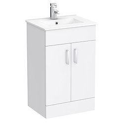 Toreno Basin Unit - 500mm Modern High Gloss White with Mid Edged Basin
