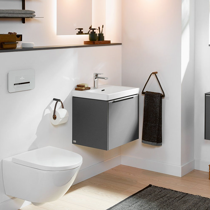 Villeroy and Boch Subway 3.0 Graphite 500mm Wall Hung 1-Drawer Vanity Unit with Glossy Aluminium Handle